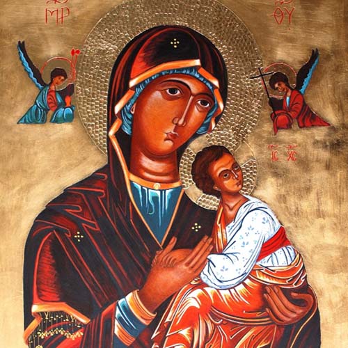Chwalić Cię będę Panie, całym sercem moim, opowiem wszystkim Cudowne Twe dzieła. Cieszyć się będę i radować Tobą, psalmy będę śpiewać na cześć Twoją, o Najwyższy. Ikona należy do sakramentaliów obecności. Jest to obecność osób świętych przedstawionych na ikonach, a poprzez nie obecność samego Boga.